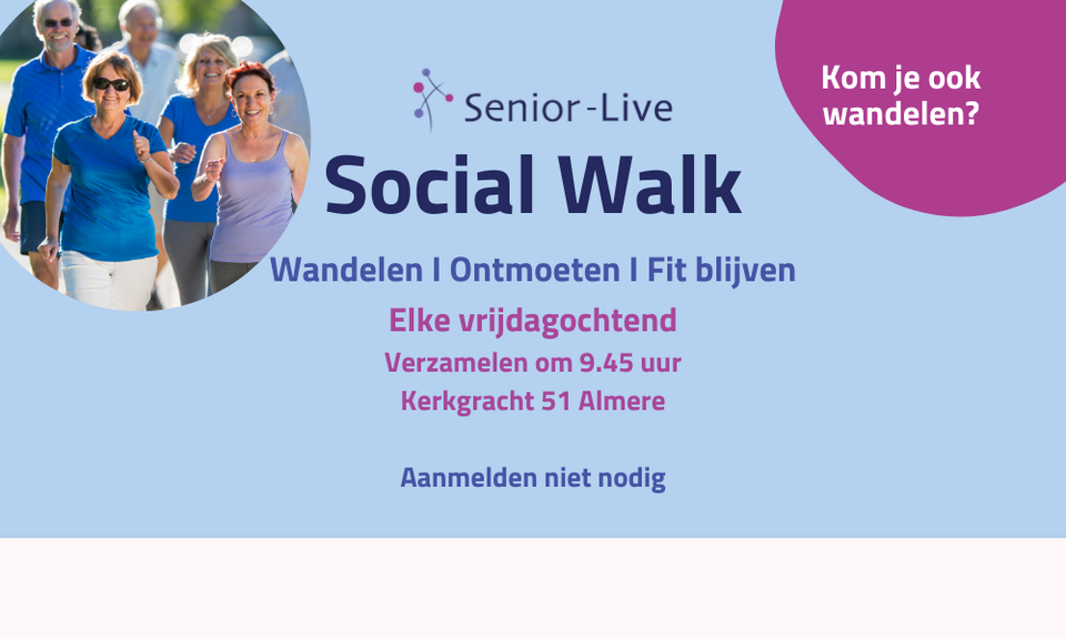 Samen wandelen is niet alleen goed voor je conditie, maar ook gezellig. Tijdens de Social Walk lopen deelnemers wekelijks een andere route door Almere Haven. Er wordt rekening gehouden met ieders tempo en situatie, waardoor de wandeling voor veel mensen toegankelijk is.